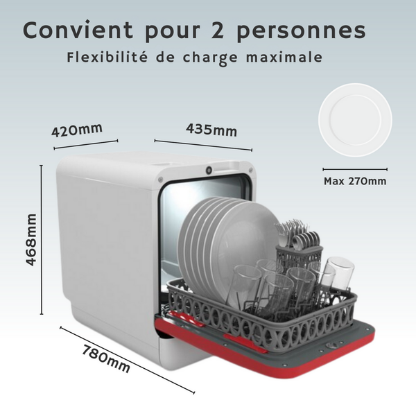 Une des caractéristiques clés de notre Mini Lave-vaisselle est l'ouverture automatique de la porte à la fin de chaque cycle. Fini le tracas d'ouvrir manuellement la porte pour libérer la vapeur : notre lave-vaisselle s'en charge pour vous, assurant ainsi les meilleures conditions de séchage pour vos vaisselles.